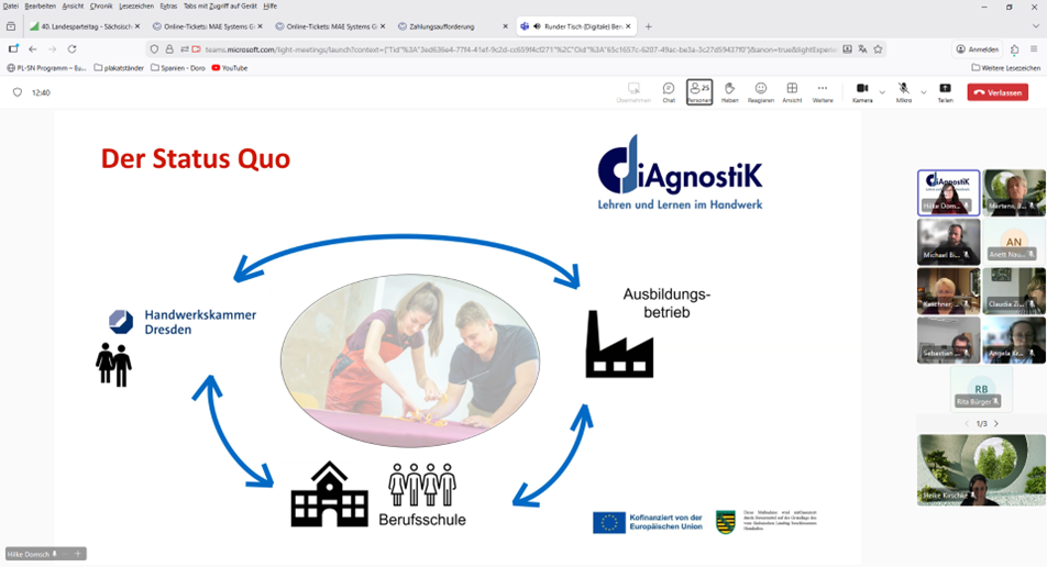 Am 13. November 2025 trafen sich im Online-Format für etwa zwei Stunden rund 30 Akteure der Beruflichen Bildung aus den verschiedenen Lernorten (Berufsschule, Ausbildungsbetrieb, überbetriebliche Lehrunterweisung). Sie tauschten sich auf Grundlage von drei Impuls-Vorträgen aus: